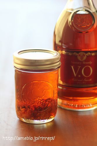 塩は軽く洗い流すだけで、サントリーブランデーVOに漬けるので