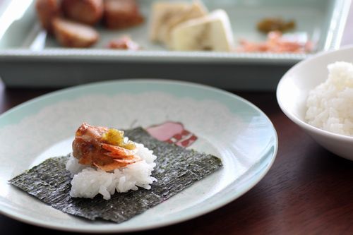 これをいろいろな組み合わせで、ごはんにのせて海苔で巻いて食べちゃう!