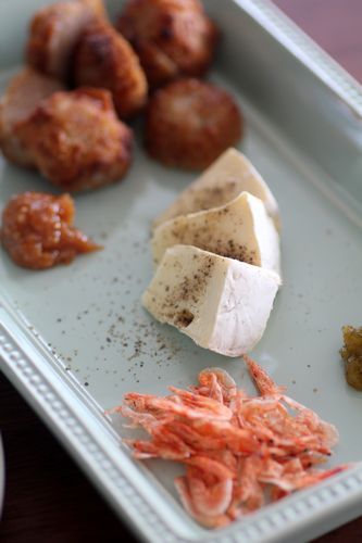 カマンベールチーズに黒胡椒、桜えび、はちみつ味噌、粗切り柚子こしょう。