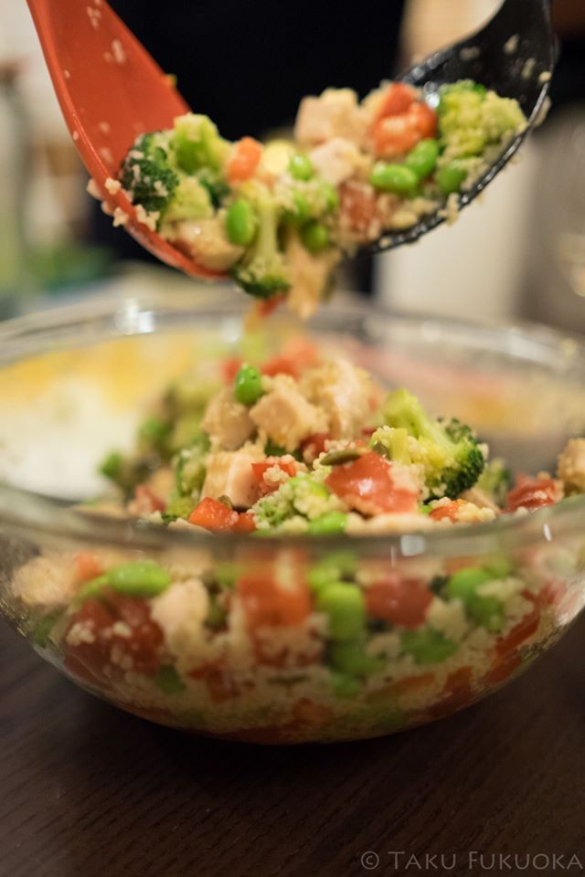 無造作にサラダを混ぜているだけなのに、こんなにきれいな写真になるんだ・・