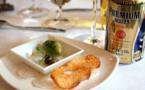 ずっとビールだけを味わっていた舌に、この一粒のオリーブのおいしかったこと!!