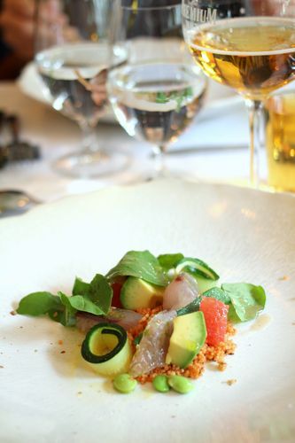 新鮮なトビウオのサラダ~旬の野菜とトマト風味のクスクス添え~