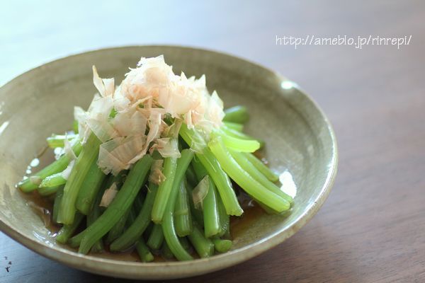 半分はシンプルに、みずのおいしさを味わえるお浸しに。