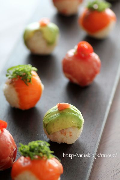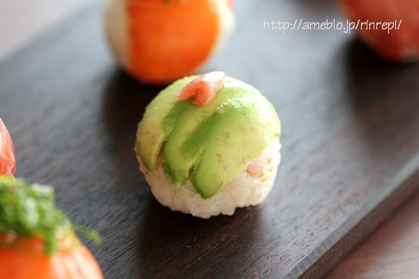 アボカドと梅干しの手まり寿司。