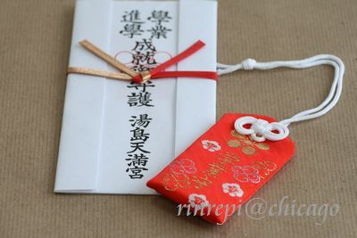 このお守りは、受験を決めた時に日本の友人がわざわざシカゴまで送ってくれたもの。