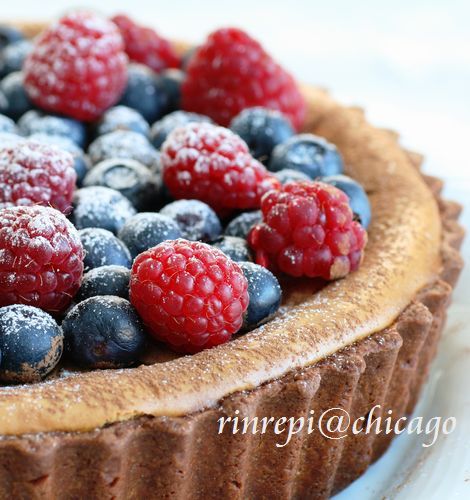 ■ 画像は、ココアパウダーを茶こしで振りかけた後にベリーをのせ、パウダーシュガーをふってます。