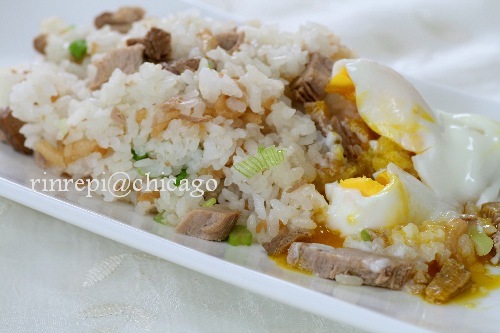 チャーシューとフライドオニオンでひつまぶし温たまのっけ