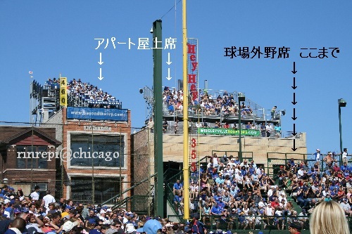 Wrigley Fieldは住宅地の真ん中にあり、道一本向かいにはアパートが並んでいるんです。