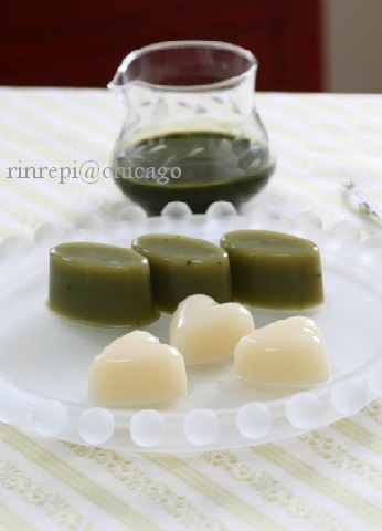 白あんと抹茶の水羊羹 抹茶ソース