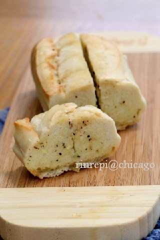 ① 室温に戻したバターに、すりおろしたにんにくと黒こしょうを混ぜる。
