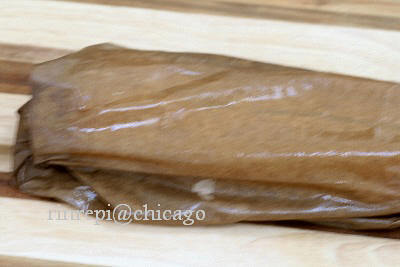 画像クリックで拡大③ ブラウンバッグに②をいれ、袋に十分水をしみこませる。