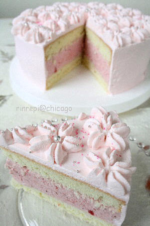 使っているのは ピンクの苺ムースデコレーションケーキ
