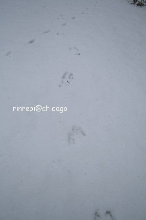 我が家の玄関前の新雪の上に、動物の足跡・・・