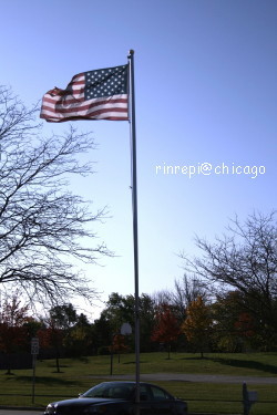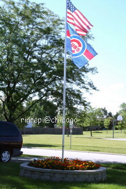 夏の間 星条旗と一緒に掲げられていたカブスの旗