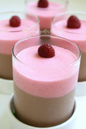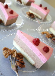 ⑨ 冷やし固めておいた⑤のチョコムースの上に流しいれて再び冷蔵庫へ。