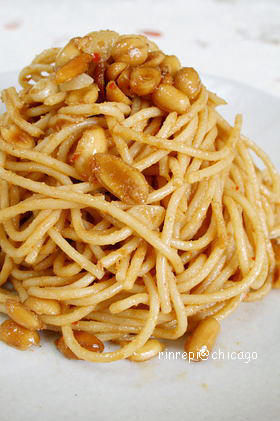 パスタとピーナッツを加えて混ぜ盛り付ける。