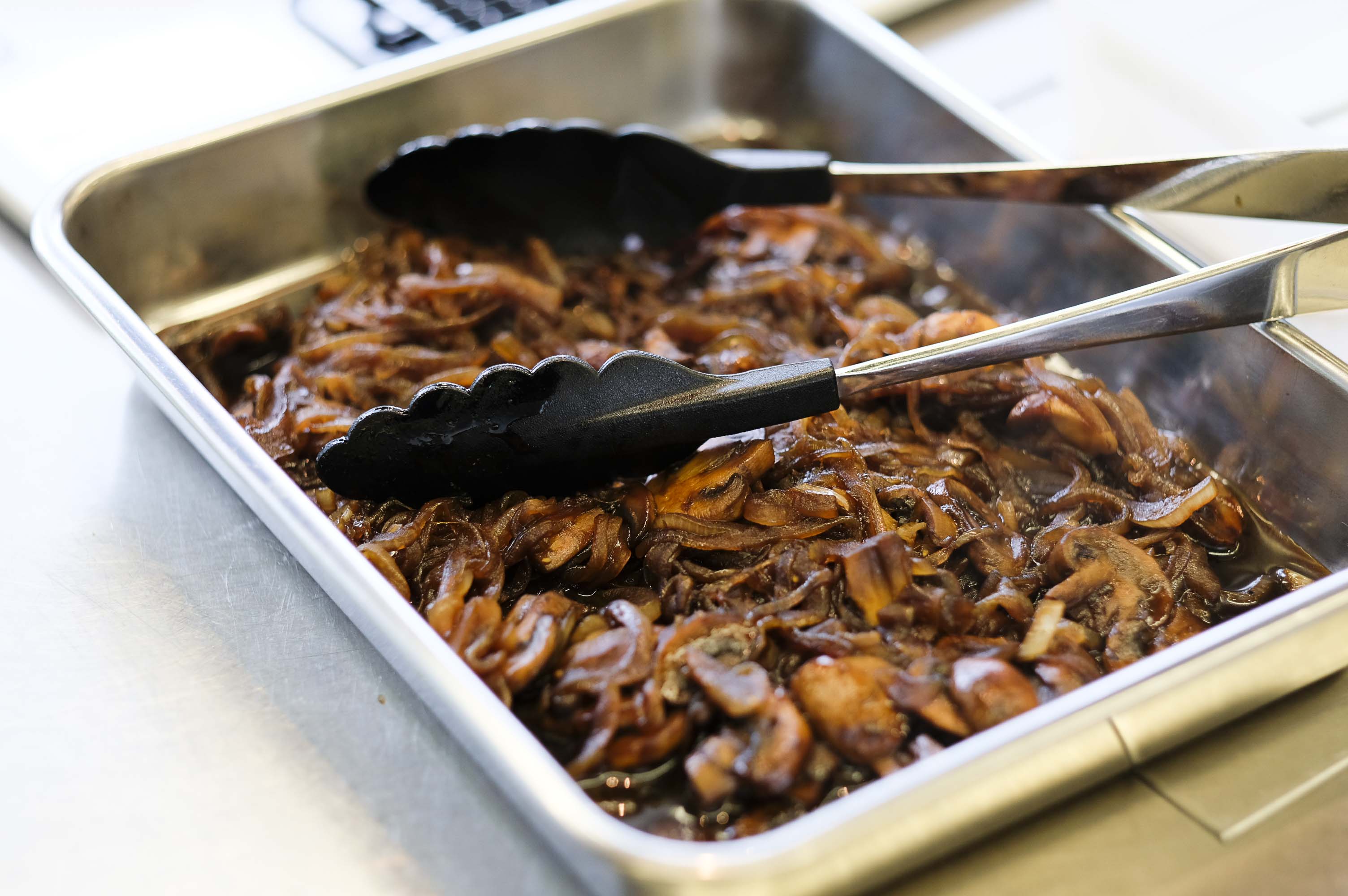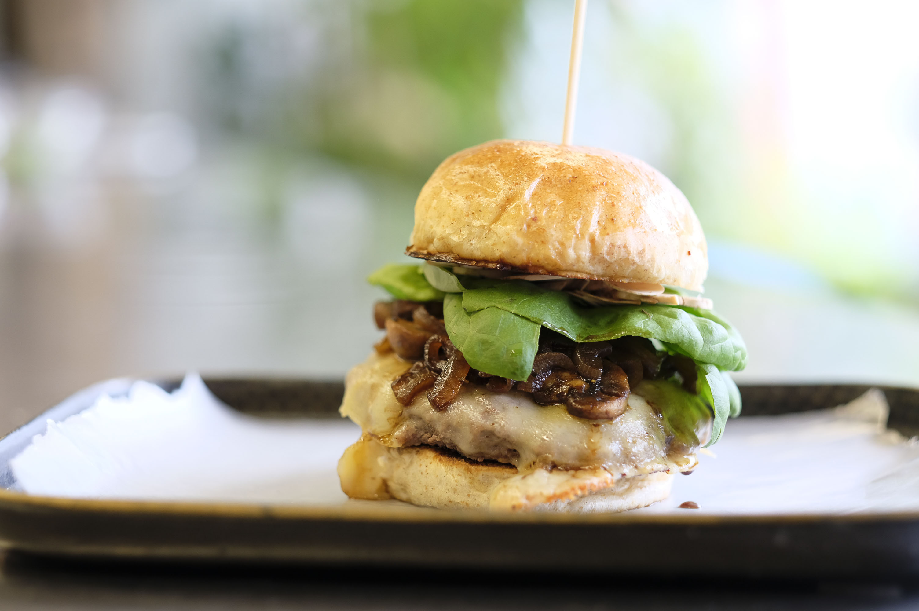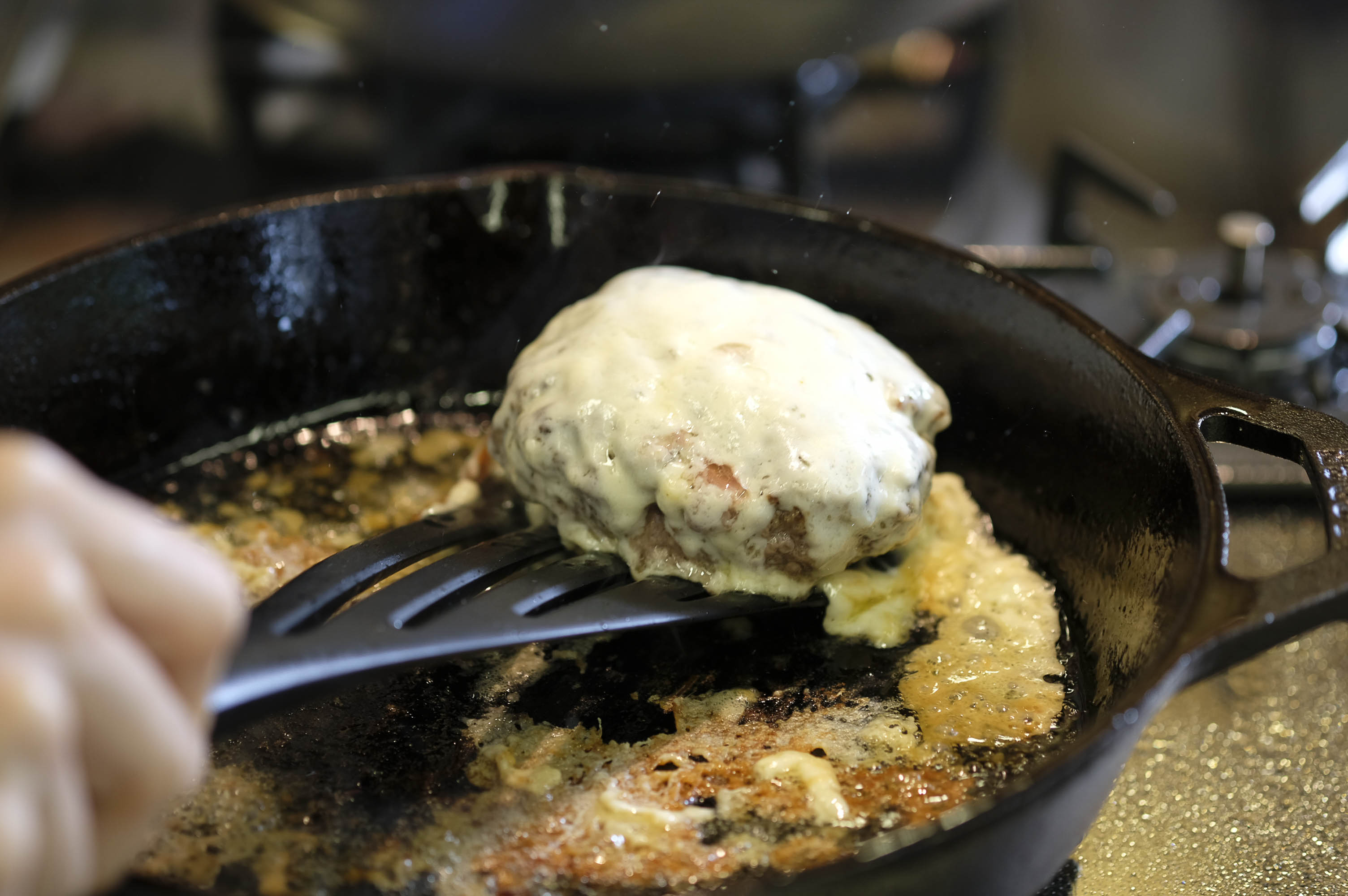 P. 18〜19に掲載の、マッシュルームオニオンのチーズバーガー