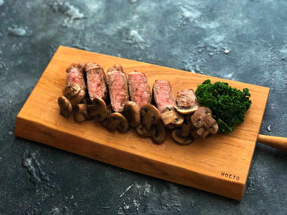 1ポンド以上ある厚切りのサーロインをフライパンで