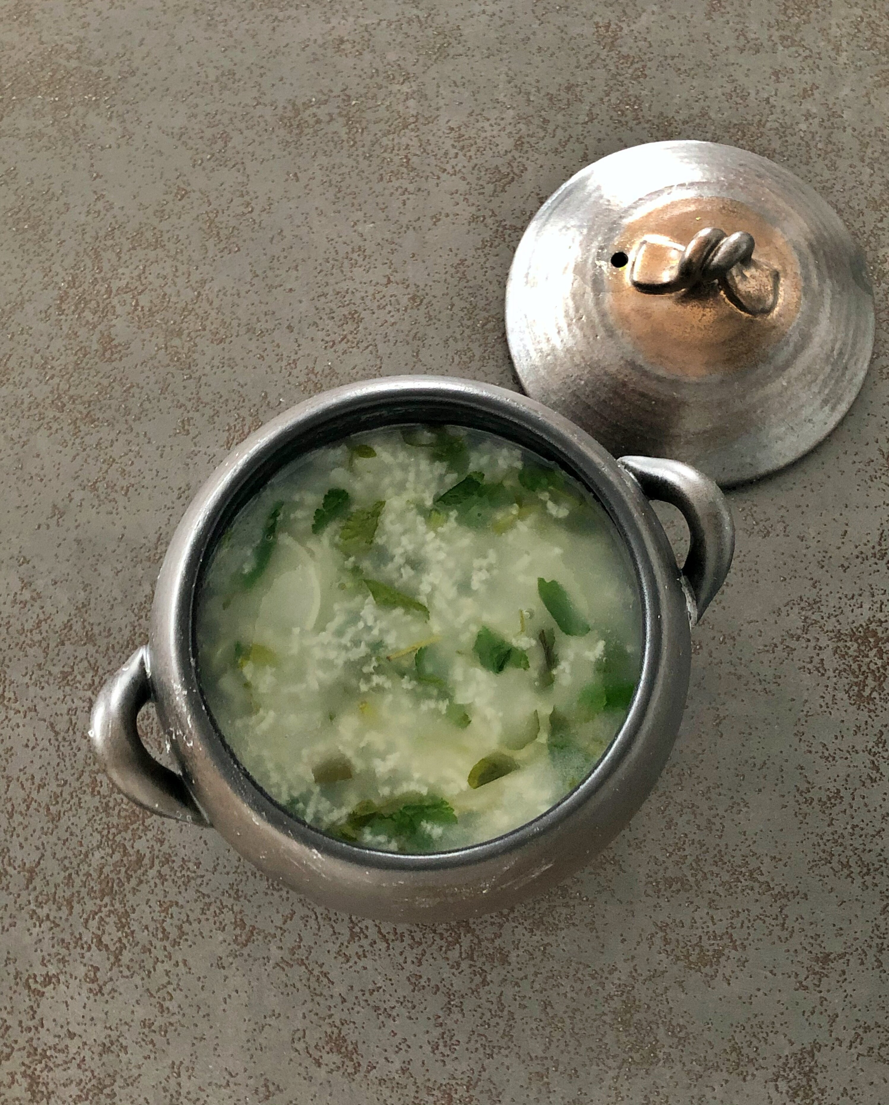 そのゆで汁お玉2杯分をフライパンに加え、強火で煮立てます。
