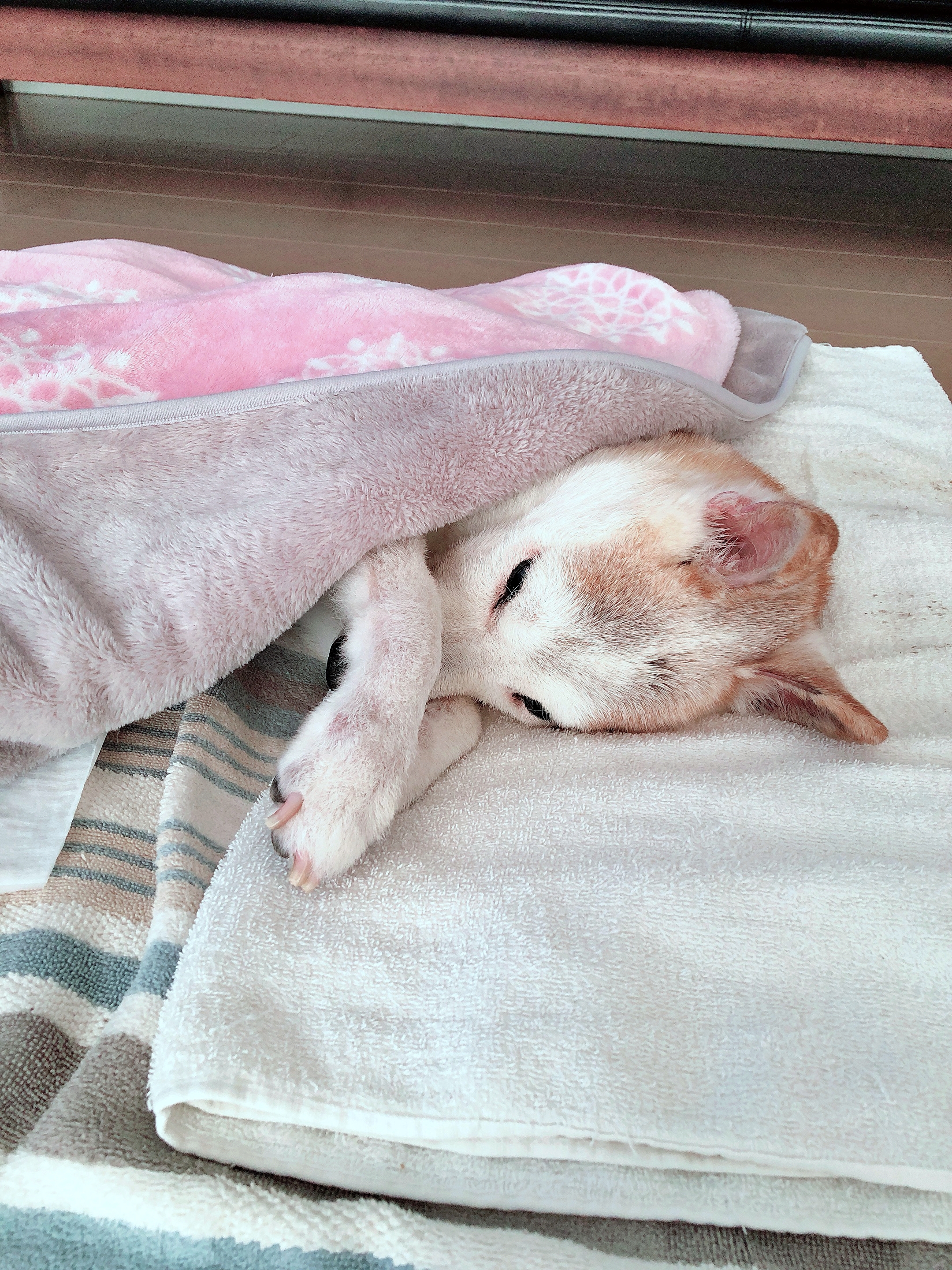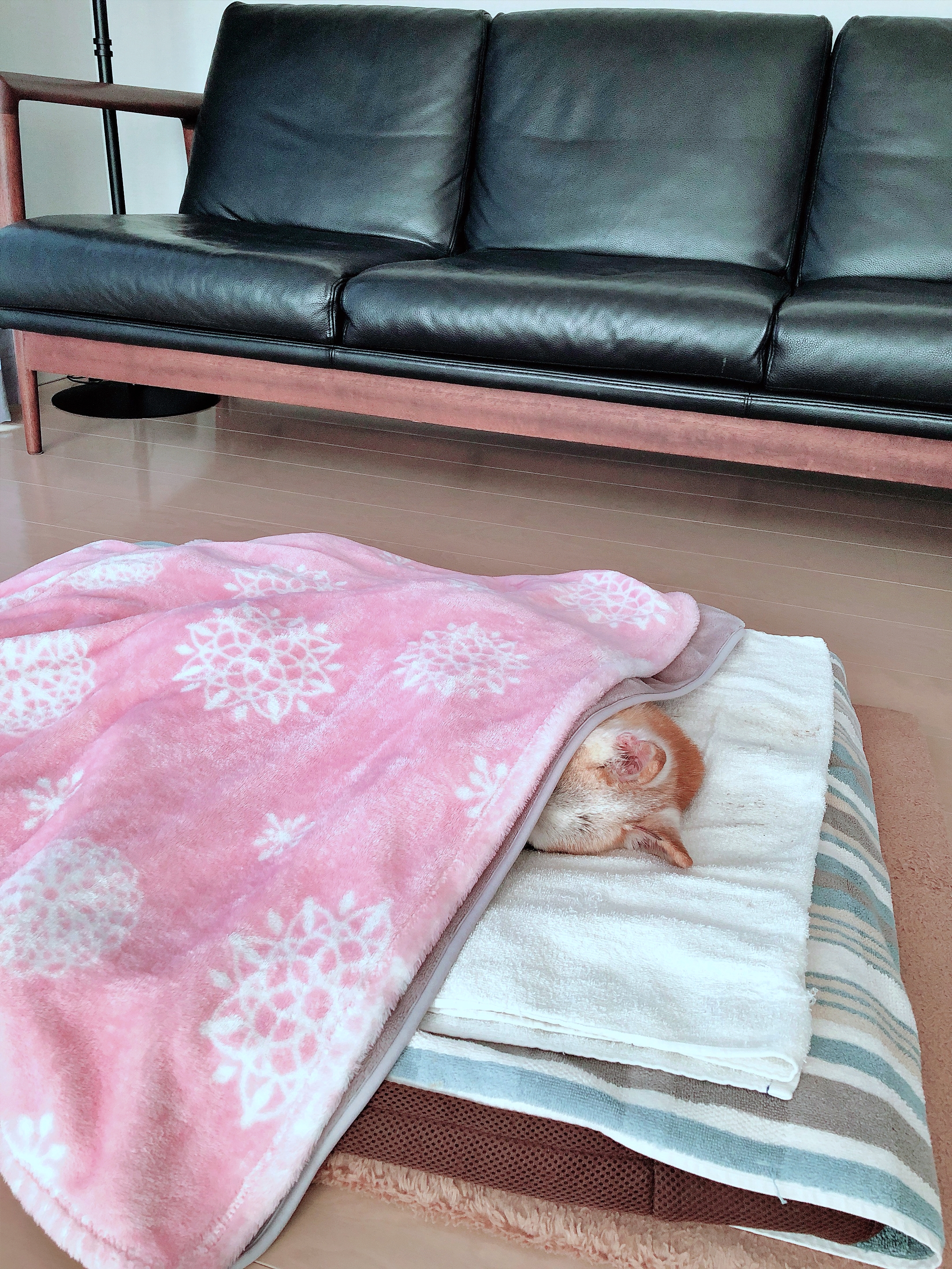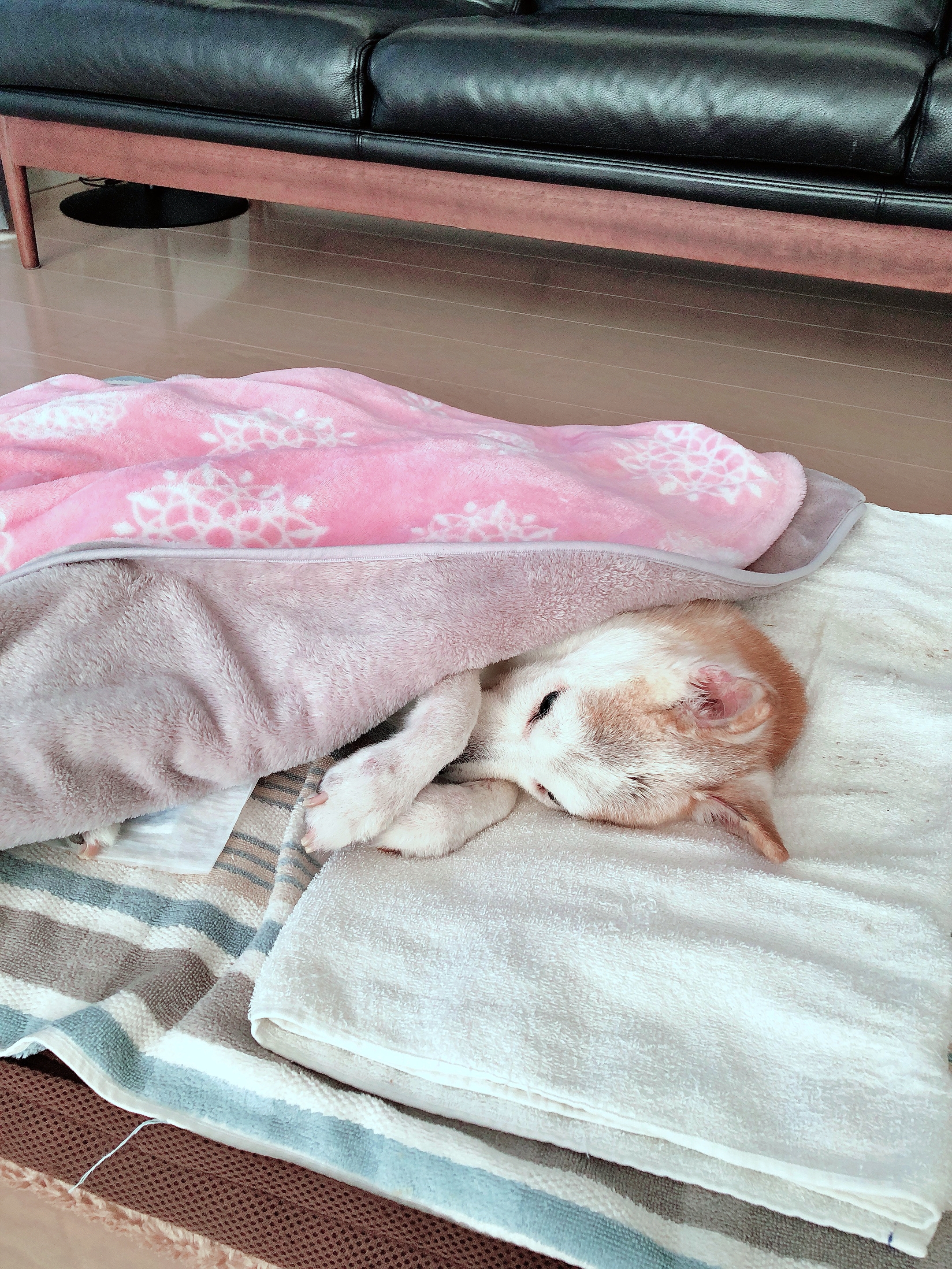 1枚目の写真のように毛布をかけてあげて数分後、