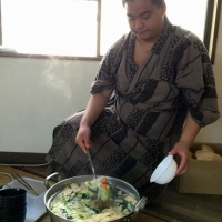 先週末のすてきな出来事*^^*武蔵川部屋の朝稽古を見学させていただきました。 武蔵川親方と雅美女将さんとは、2011年10月に宮城県内で3日間の炊き出しを、ご一緒させていただきました。1000人分のちゃんこ鍋を作りました。野菜を洗って、切って、大鍋5台での炊き出し。それ