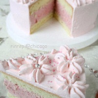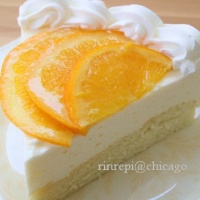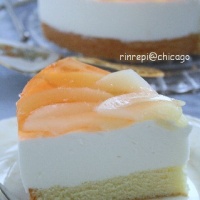 以前、レシピブログお菓子連載で、カップ仕立てでレシピを紹介させていただいたムースをパーティー用に、アントルメにしてみました。レシピの約1.5倍量で、15㎝アントルメ2個できました。分量はこちらを参考にしてくださいね ☞ 桃とグリオットのムースカップ切り分けると