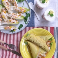 先日、小松彩夏さんのバースデー料理教室が開催され、光栄なことに、お手伝いのご依頼をいただきました。小松さん考案の低糖質レシピ3品を、ファンの皆さんと楽しくお料理しました。・野菜とスパイシーチキンのクレープ・チコリボートの魚介のマリネ・レモンレアチーズケーキ