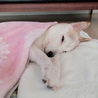 お久しぶりです〜、ハナばあちゃんだよ*と申しております。18歳のお誕生日から1ヶ月が過ぎました。ますます可愛い!おばあちゃん柴犬です。1枚目の写真のように毛布をかけてあげて数分後、2枚目の写真のように、すっぽり毛布に潜り込んでしまうの。潜り込むと言っても、ハナ