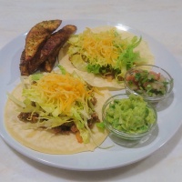 オーブンフレンチフライとフラワートルティーヤ・タコミート・ワカモレ・サルサ