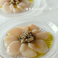 ホタテカルパッチョ焦がしねぎレモンソース・湧別食材を考える会!